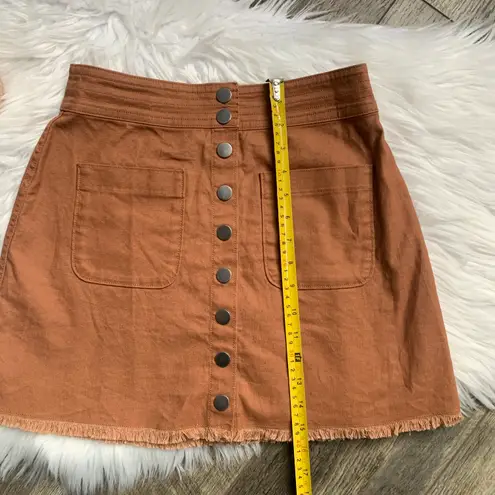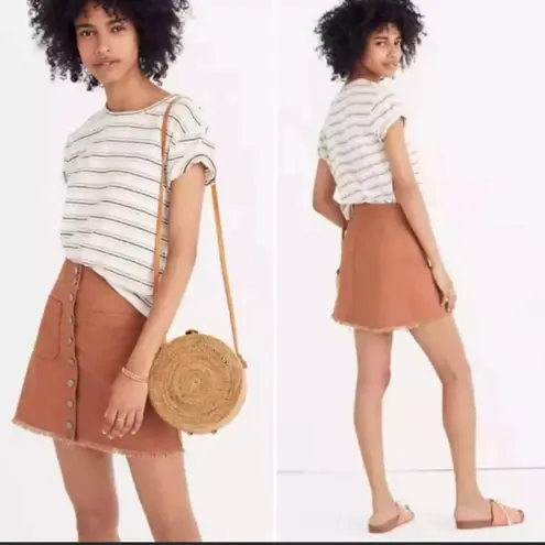 Madewell High Waist Snap Skirt Retro Patch Pockets Raw Hem Burnt Orange Rust Brown color Size 0 Sn... Show more