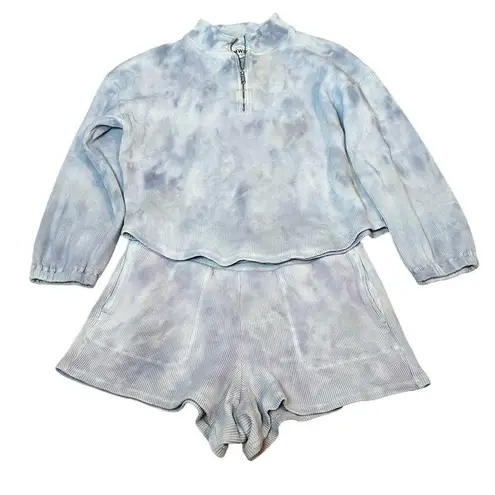 Madewell MWL Waffle Half-Zip Shirttail Sweatshirt & Pull-on Sweatshort Set Size Medium Top Pit to... Show more