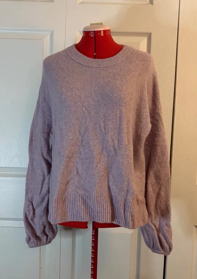 Lavender/blush sweater from Madewell Size Medium Elasticized sleeve cuffs Stretchy Knit 56% Nylon 3... Show more