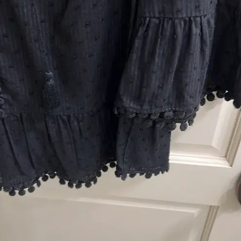 With playful pom-poms, swingy tassels and sleeves with peekaboo slits, this floaty swiss-dot top is... Show more