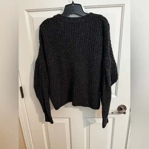 . A play on texture and volume, this slightly cropped pullover sweater has bold exaggerated sleeves... Show more