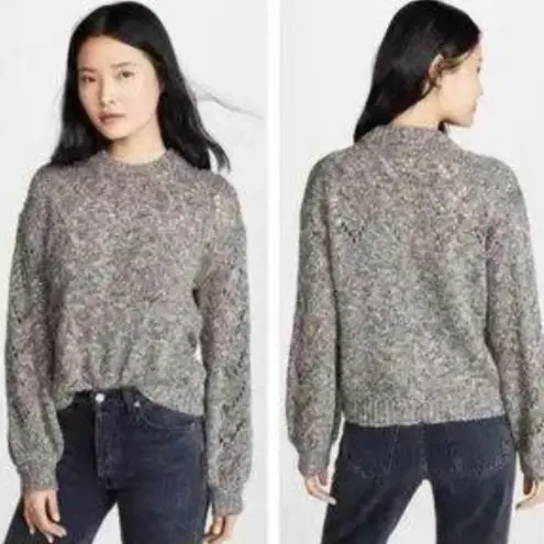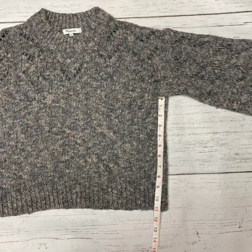 Size small. Madewell Pointelle Bubble-Sleeve Pullover Sweater in marled rock. Cute pointelle details... Show more