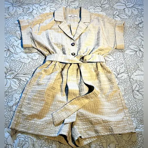 MADEWELL Seersucker Camp Romper Button Front Split Collar Pockets Tie Made of textural seersucker,... Show more