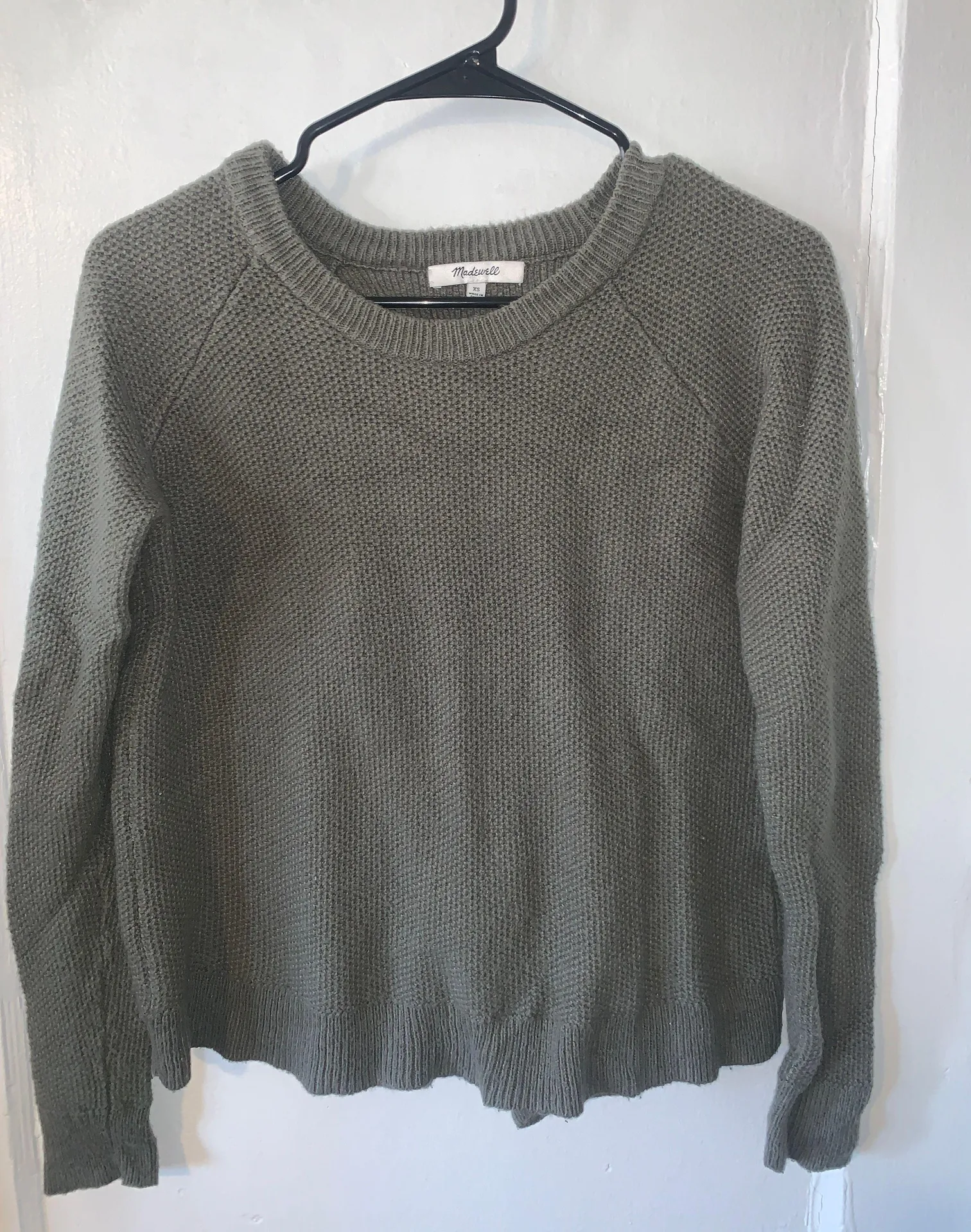 Army green sweater, has opening in the back, makes for a super cute design ! No flaws