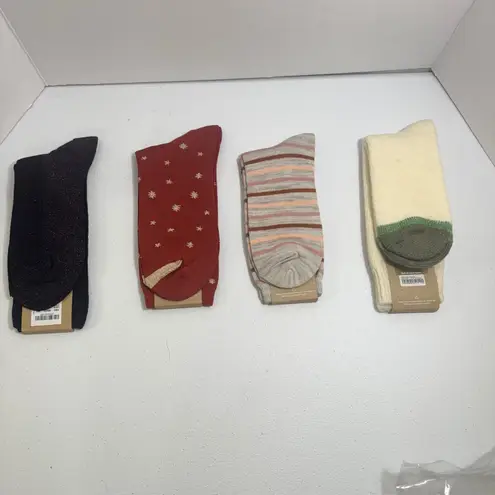 Elevate your everyday look with this versatile set of four Madewell trouser socks. The black pair shimmers with subtle metallic threads, adding a touch of glamour to any outfit. The deep red socks feature a charming all-over starburst pattern, perfect for a playful yet sophisticated touch. A cozy cream pair offers a classic, comforting feel, while the striped option in muted tones of peach, brown, and grey provides a touch of modern flair. Each pair is designed for comfort and style, making them ideal for pairing with boots, loafers, or even sneakers for a chic layered look. Dress them up for a brunch date or down for a relaxed weekend outing.