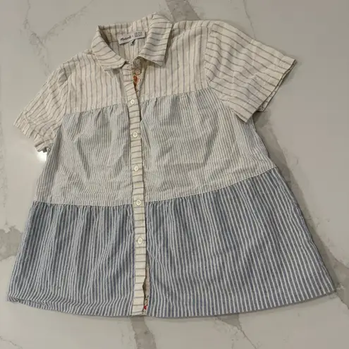 Madewell x The New Denim Project Stripe Mix Button Down Shirt Women’s Size Small Off White/ Skinny... Show more