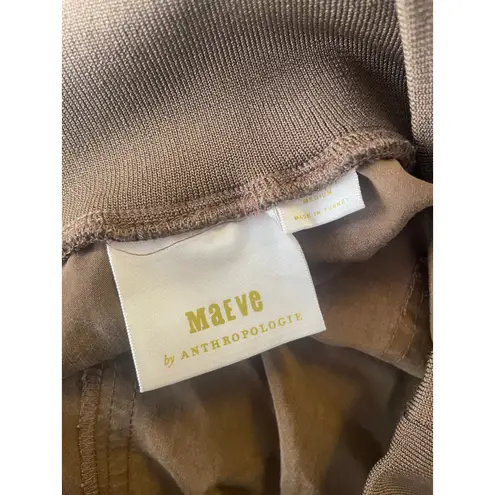 Effortless style meets ultimate comfort in these chic jogger pants. The relaxed silhouette drapes beautifully, enhanced by thoughtful details like a wide, elasticized waistband and stylish cargo pockets with button detailing. Crafted for both fashion and function, these joggers feature a flattering tapered leg with cuffed ankles, creating a streamlined look. The soft, breathable fabric ensures all-day wearability, perfect for leisurely weekends or casual outings with friends. Picture yourself strolling through a local farmers market, enjoying a laid-back brunch date, or simply relaxing at home in these stylish and comfortable pants. Style: Jogger Department: Women Material: Lyocell, Polyester, Elastan Leg Style: Tapered Features: Pockets, Elastic Waist, Cuffed, Comfort Type: Pants Fabric Type: Knit Closure: Pull On, Button, Drawstring Pattern: Solid Accents: Button Theme: Casual, Bohemian Occasion: Casual, Travel Keywords: Maeve, Anthropologie, Joggers, Pants, Brown, Lyocell, Cargo Pants, Elastic Waist, Comfortable, Medium, Casual, Boho, Relaxed Fit