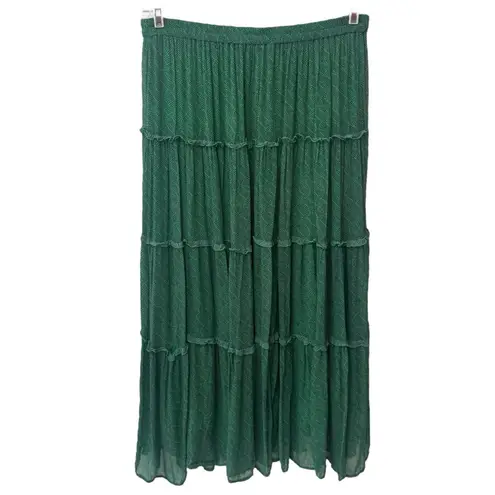 Maeve by Anthropologie Phoebe Tiered Midi Summer Skirt Bohemian Flirty Size S Green - $40 - From Casey