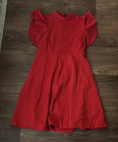 Maeve by Anthropologie brand. Chic red dress with flutter sleeves. Perfect for any occasion. Stretch... Show more