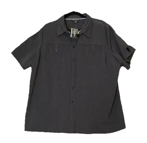 Maggie Barnes 1X 18/20‎ Black Striped Button Down Top Short Sleeve Pockets NEW White - $25 New With Tags - From Andrea