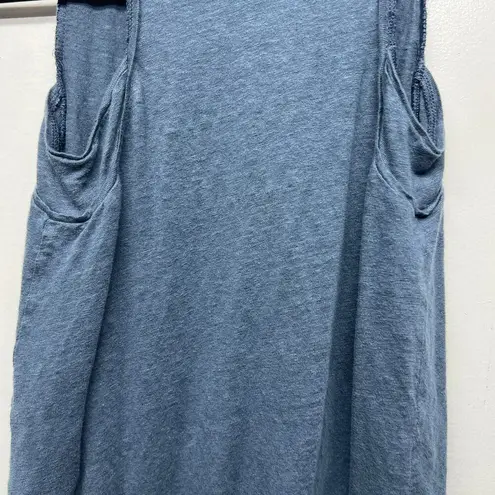 Maje women's linen blue tank top. V-neck. Racerback. Natural and breathable fabric. Lightweight. In good used condition. No stains, tears or holes. 100% linen. Machine wash or dry clean. casual lagenlook coastal spring summer beach activewear breathable lightweight minimalist boho bohemian