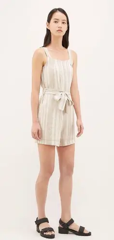 Mango Casual White & Beige Hagen Cuff-Hem Linen Romper Sleeveless, short bottoms Thick straps Hid... Show more