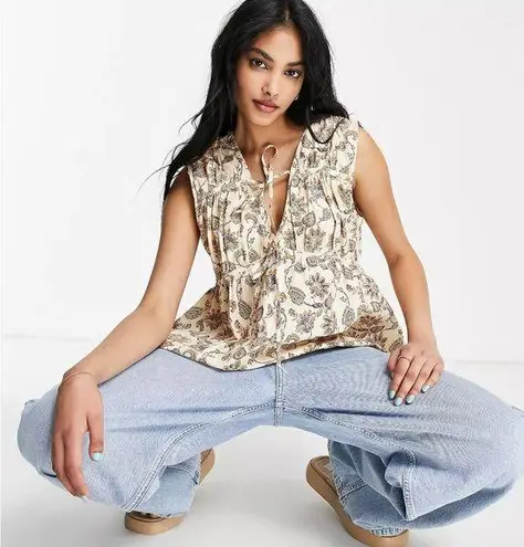 100% Cotton. Flowy fabric. Printed design. V-neckline with bow closure. Sleeveless. Designed in Barc... Show more