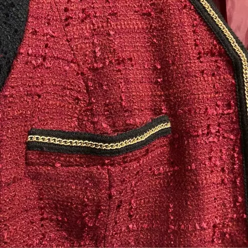 MANGO Red & Black Tweed Blazer Jacket with gold chain trimming Four front pocket Hook closure down f... Show more