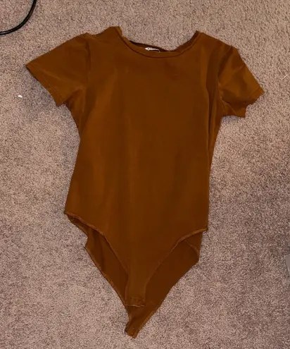 Mangopop brown short sleeve stretch snap close bodysuit casual basic minimal Size M - $18 - From Cathy