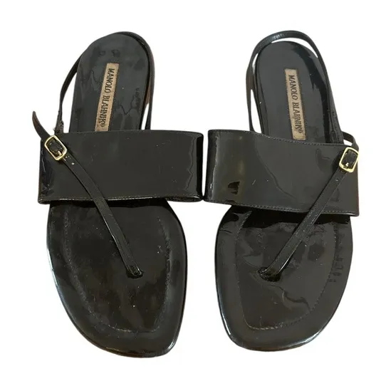 Pre owned excellent condition. The only wear these have are on the bottoms from being worn a handful of times. The patent leather is in perfect condition. These are the perfect neutral, classic, minimalistic pair of sandals. WOMENS size 6.5