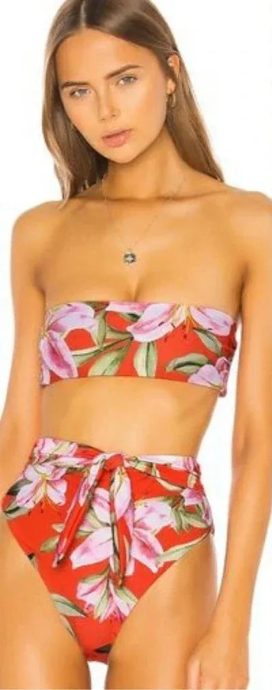 Mara Hoffman‎ Abigail Bandeau Bikini Top Red Floral Size XS - $90 New With Tags - From Spin