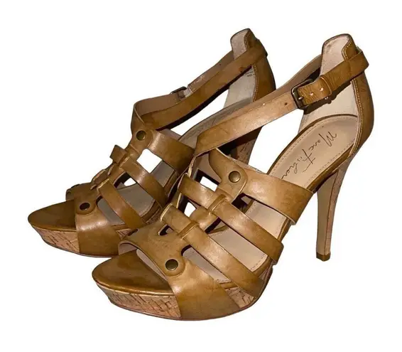 Description: Marc Fisher Cork Platform Heels Strappy Camel Tan Buckle Closure Open Toe Features: B... Show more