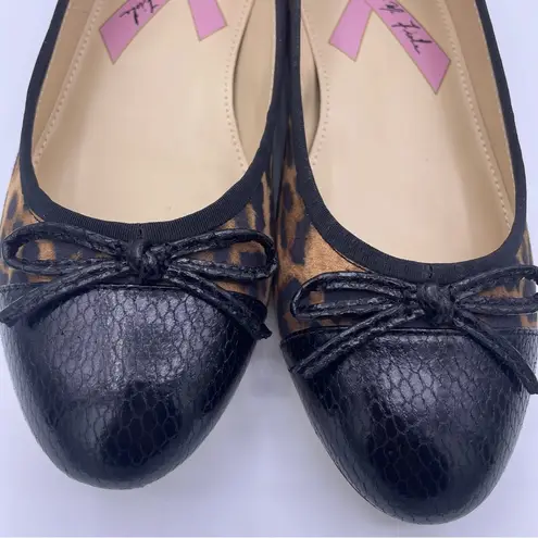 New in box •Size 5 •Soft animal print fabric •Leather cap toe •Bow detail •Slip ons •Padded insoles... Show more