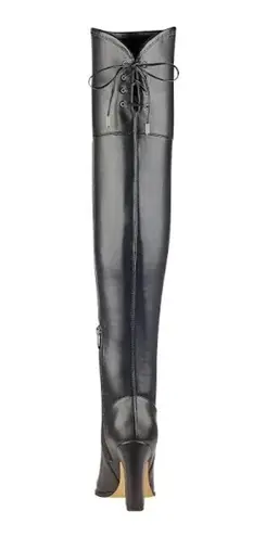 Black faux leather boots with lace up back detail, zipper closure as shown. Worn once and in very ge... Show more