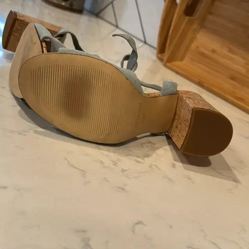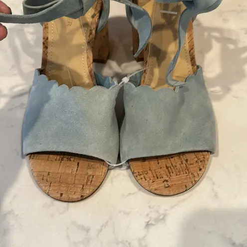 Marc Fisher Piya Scalloped ankle wrap Sandals suede Light Blue cork heel garden party wedding summer... Show more