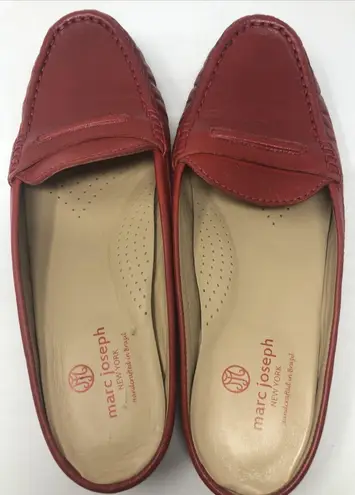 One small flaw on the inside of the shoe see photos Made in Italy Size 10 The Marc Joseph New York East Village Loafer Lawrence Mule in red leather is a stylish and versatile shoe perfect for various occasions. Featuring an almond toe shape and slip-on closure, these mules offer a comfortable and lightweight experience with a cushioned and breathable design. The designer brand and high-quality leather materials make them a luxurious and durable option for both casual and workwear looks. Perfect for year-round wear, these mules add a touch of preppy sophistication to any outfit.