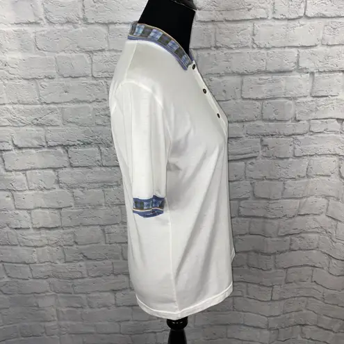 cotton blend 3 button collared top w/retro design sleeve cuffs and collar S Multiple - $18 - From Joanne
