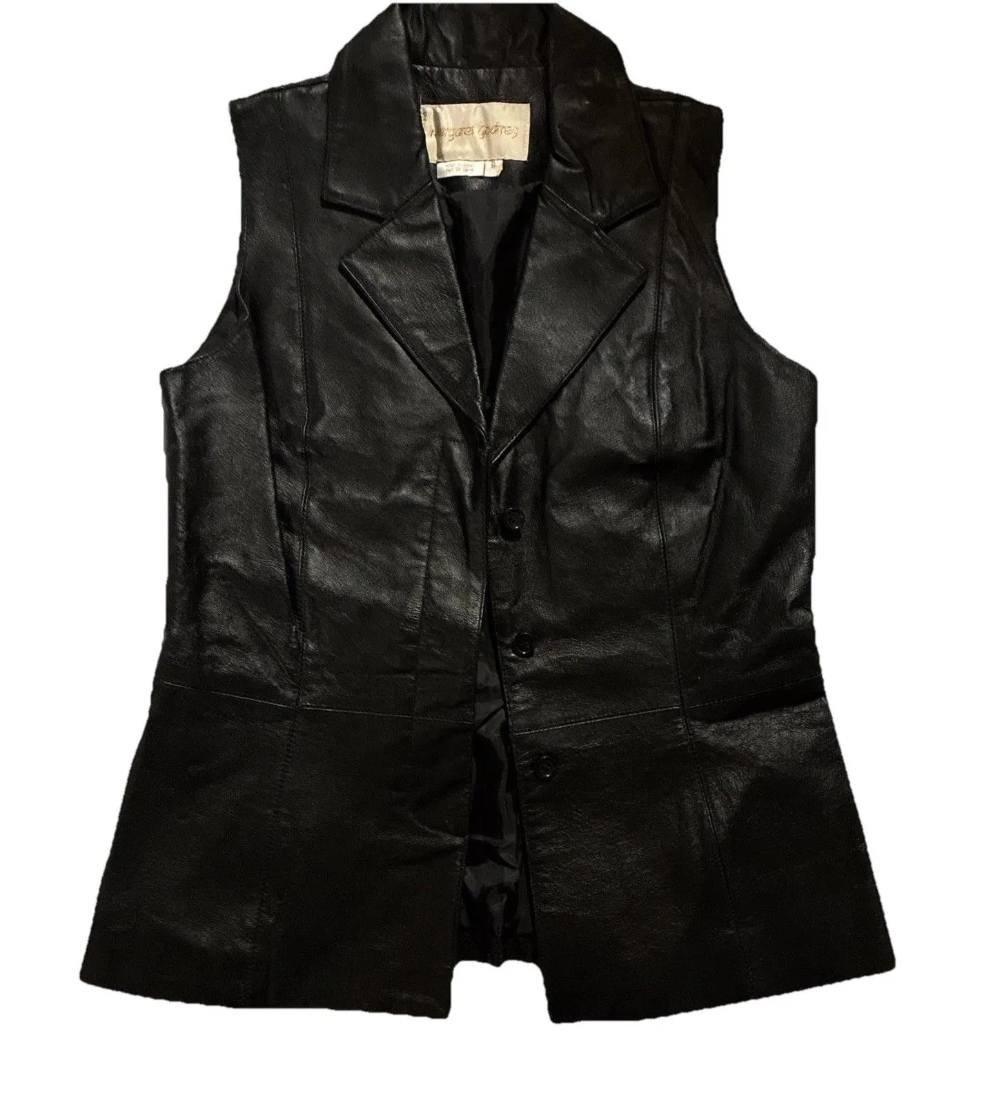 Margaret Godfrey Women’s Black Leather Vest Size 6 Collared Button Front - $19 - From Malea