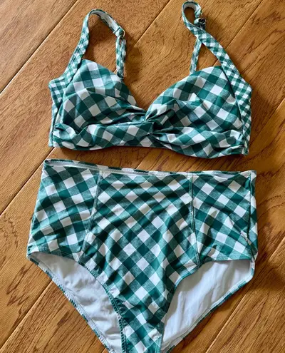 Marina West 2 Piece Bikini Swimsuit Women’s XL Green Gingham Checkered Plaid - $16 - From Crystal