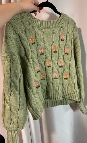 Worn few times. Has embroidered flowers on the sweater.