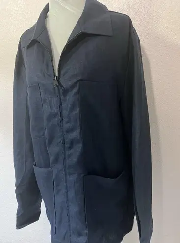 Massimo Dutti Navy Blue Linen Longsleeve Jacket Sz M Oversized Lagenlook Pocket Size M - $62 - From Luciana