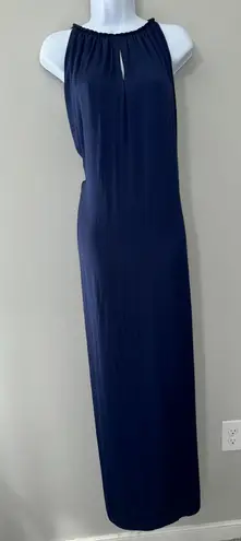 MASSIMO DUTTI NAVY BLUE‎ SATIN KEYHOLE FRONT LINED MAXI GOWN DRESS SIZE 6 Blue - $50 - From Desiree