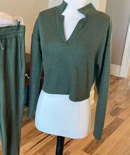 Matching Set Green Textured Knit Long Sleeve Top Drawstring Pants Size M - $35 - From Debbie