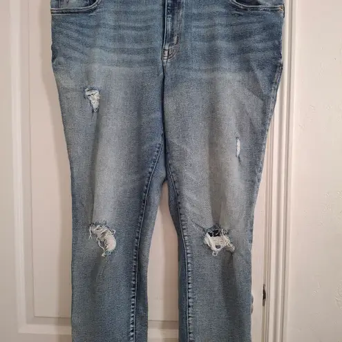 Stylish distressed blue jeans perfect for casual outings. Comfortable fit with a trendy look.