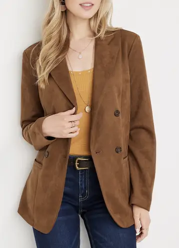 Maurices brown faux suede button blazer. In excellent condition! Collared. 4 overlapping button fron... Show more