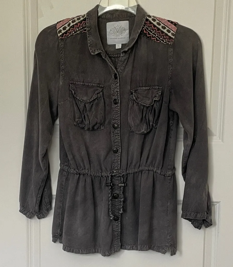 Great preowned condition Gray mineral wash in rayon material Pink,gray and white stitching across... Show more