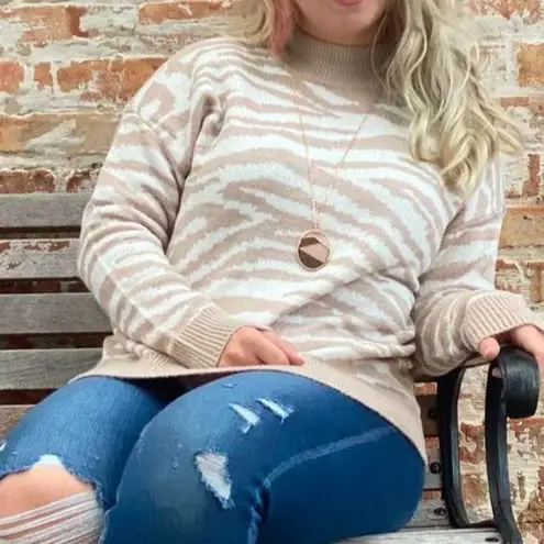 super soft and cozy fabric zebra print long sleeves straight hem mock neck rib trim at sleeves and h... Show more