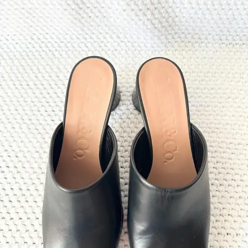 Size 37 or 7 from Max & Co. Style name Acromino. Black leather narrowed squared off pointed toe open back mule heel. Round block heel. Leather bottom sole. Made in Italy. New in box with light wear on bottom from having been tried on. Comes with original box. Measurements: approximate 2.5" heel All items come from a smoke free/pet free home. No trades or modeling. As always, offers are welcome. Thanks for stopping by!