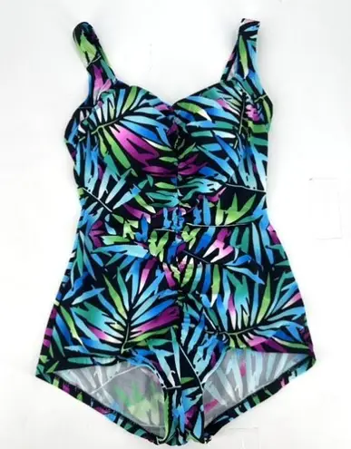 Maxine of Hollywood Tropical Swimsuit one piece size 16 XL Ruched Black Blue Make a splash in this... Show more