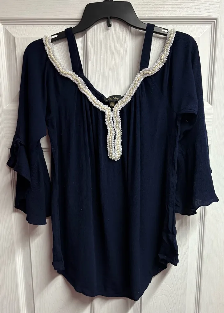 Melissa Paige Cold Shoulder Embellished Tunic Top Size Medium Blue - $15 - From Emily