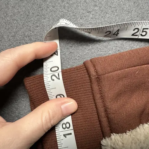 Waist - 40" Rise - 12.5" Inseam - 29" Smoke free, dog friendly home. D175GOF03 Brand: Member's Mark Style: Sherpa Lined Jogger sweatpants with cozy fleece exterior and plush sherpa interior. Gender: Womens Size on tag: XXL (XX-Large) Color: Cinnamon Stick (brown) Materials: Body 55% recycled polyester, 28% polyester, 15% rayon, 2% spandex; rib 95% recycled polyester, 5% spandex. Made in Jordan. Details: Elastic waistband with drawstring, ribbed cuffs, soft sherpa-lined side pockets, pull-on jogger silhouette, machine washable. Style/Model code: MM23572. UPC: 193968392246. RN: 52469. Note: Small fabric pick on front leg as shown in close-up photos.