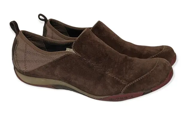 Merrell Bisect Coffee Bean Brown Suede Slip On Shoes Slip on Low top Suede Comfort shoe Color: coffee bean Size: 10 Condition: Good, some wear on suede, see all pictures for details please