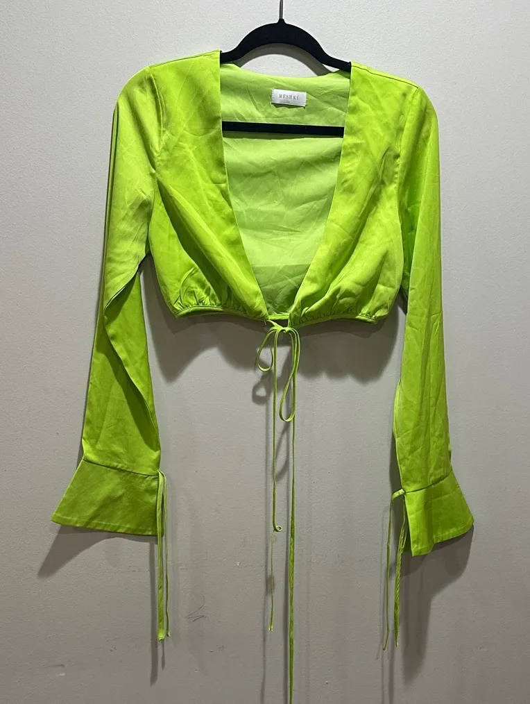 Meshki Neon Green Tie-Front Blouse Size XS - $28 - From Sandra