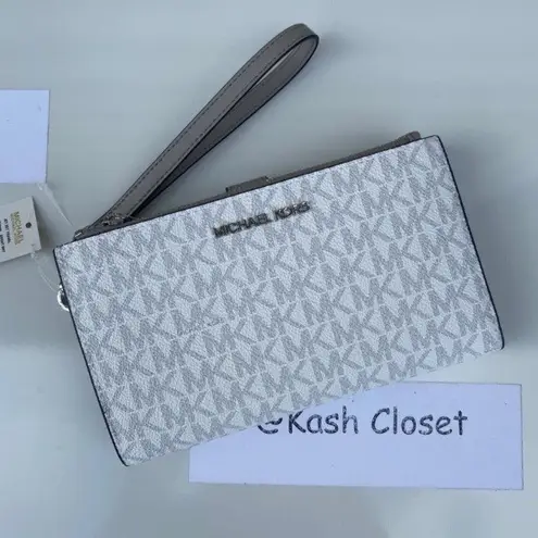 Michael Kors Double Zip Wristlet Large MK Signature Wallet MK Double Zip Wristlet Wallet Bright Whi... Show more