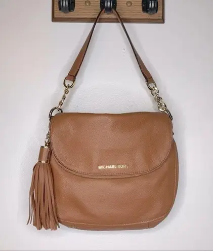 Michael Kors Cognac Leather Bedford Tassel Purse. Leather shoulder strap with gold chains. Super cle... Show more