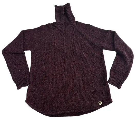 Chic turtleneck sweater in deep burgundy. Features a cozy design with ribbed cuffs. Ideal for layeri... Show more
