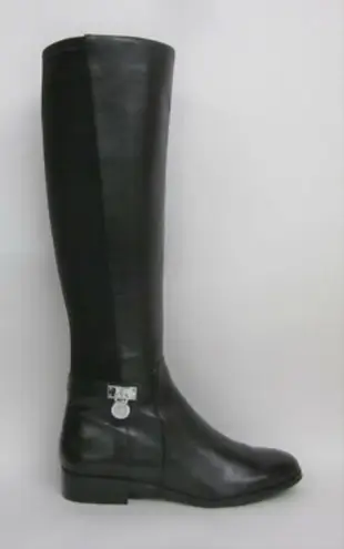 leather-and-fabric Synthetic sole Shaft measures approximately 16" from arch Round closed-toe 50/50 tall boots with metallic embellishment at ankle Leather/elastic stretch Lycra upper Shaft: 12" height, 13-3/4" circumference, 1" heel Rubber sole Questions? Leave a comment below!