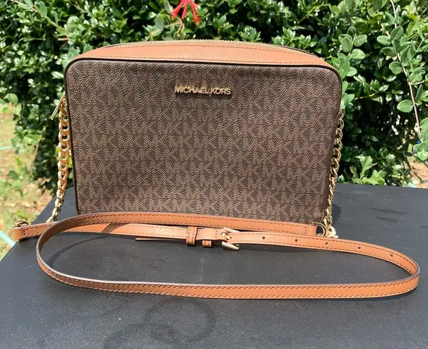 Michael Kors Jet Set Brown/Acorn/Gold Large Crossbody Purse Excellent Preloved Condition Approxima... Show more