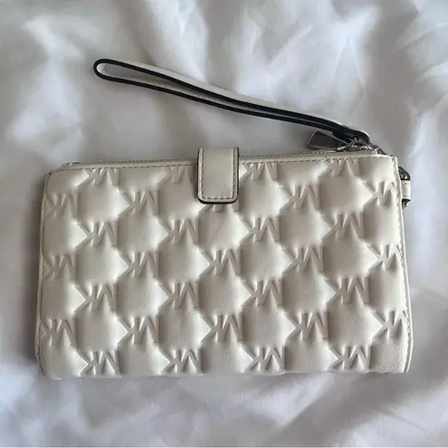 Stay effortlessly chic with this crisp white Michael Kors Jet Set wristlet. Crafted from durable saf... Show more