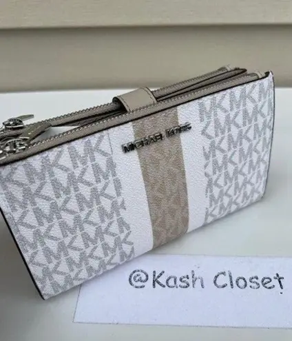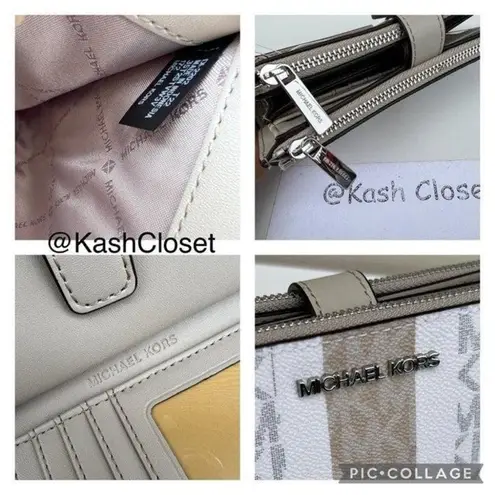 Michael Kors Double Zip Wristlet MK Signature Stripe JetSet bag ** International buyers will respon... Show more